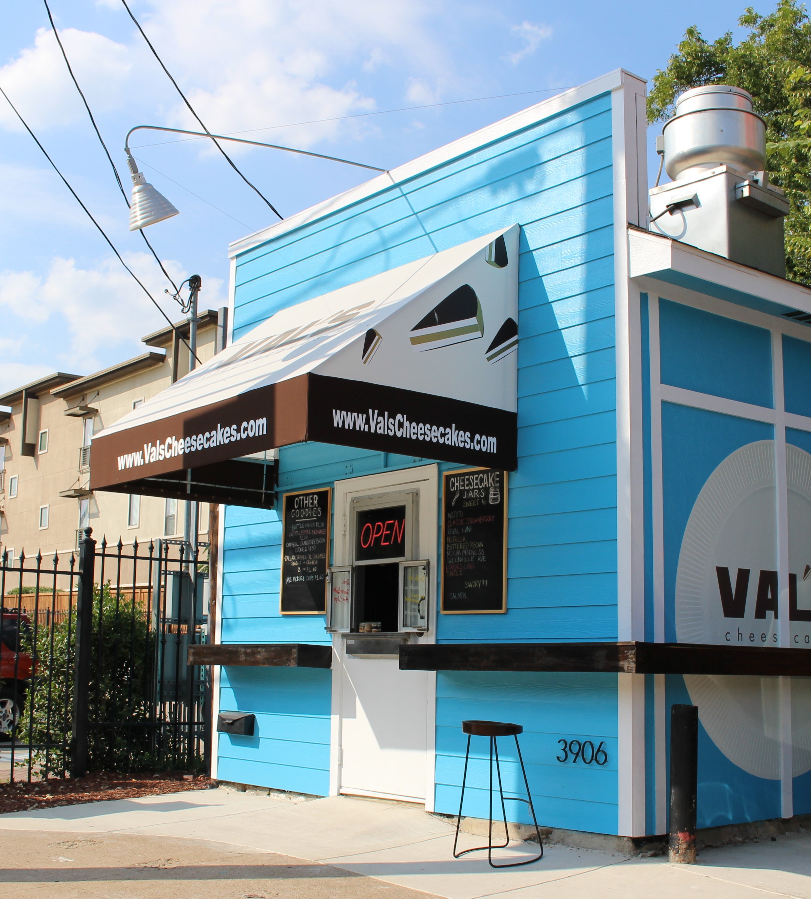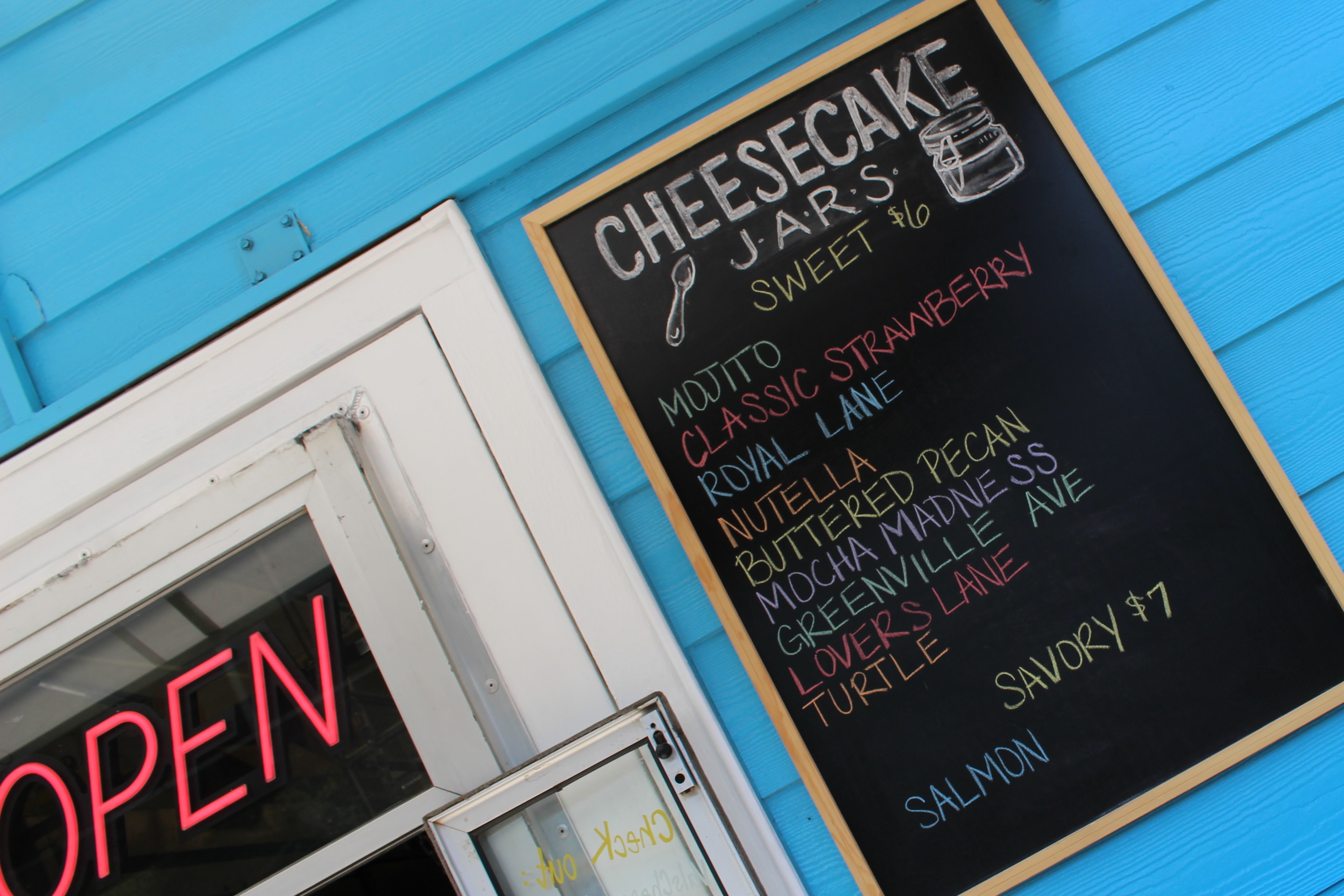 I have died and gone to heaven. Cheesecake heaven. I have been following Val’s Cheesecakes like a stalker on Instagram but my schedule would not allow me to visit. I finally got the chance. I was not disappointed. The days sweet and savory cheesecakes are posted outside the little blue beacon!
