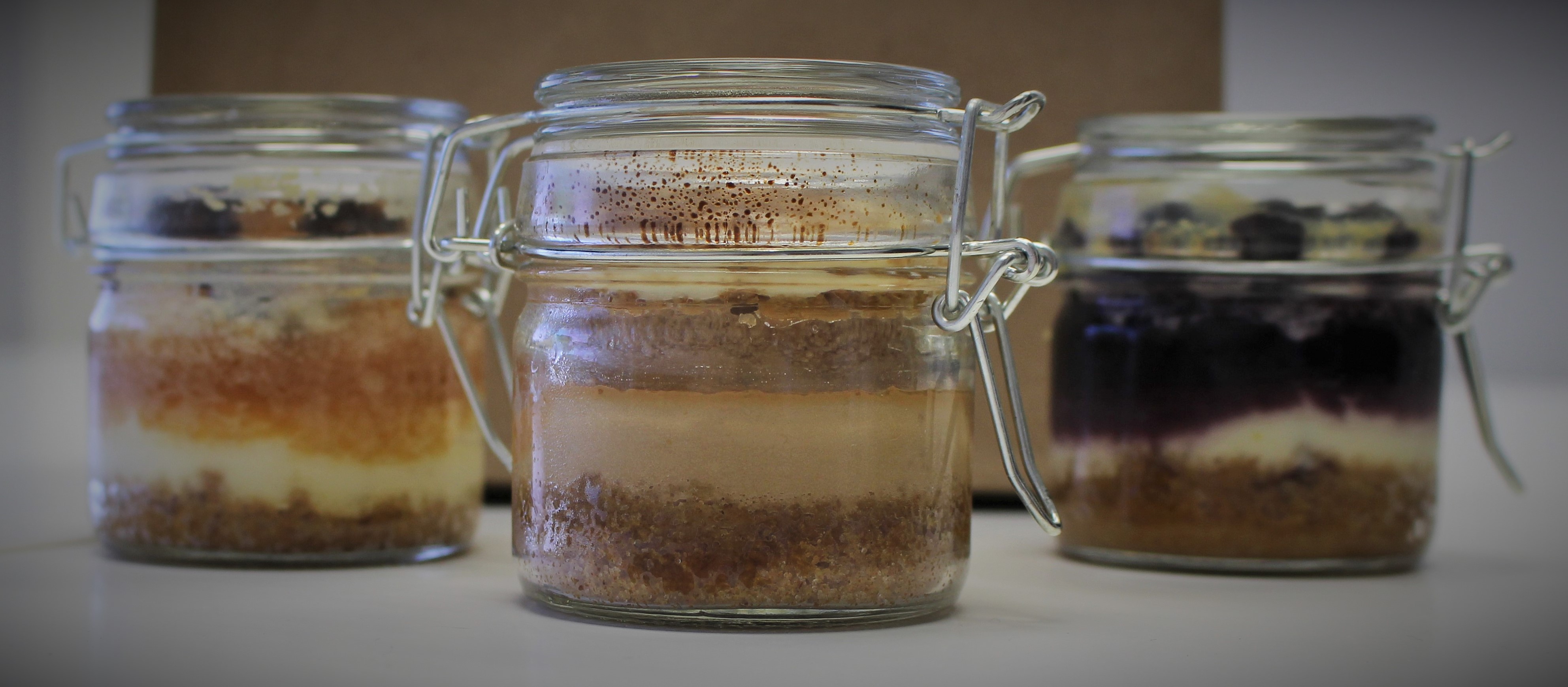 The cheesecakes are served in small, glass clamp jars. So cute and the perfect personal size.