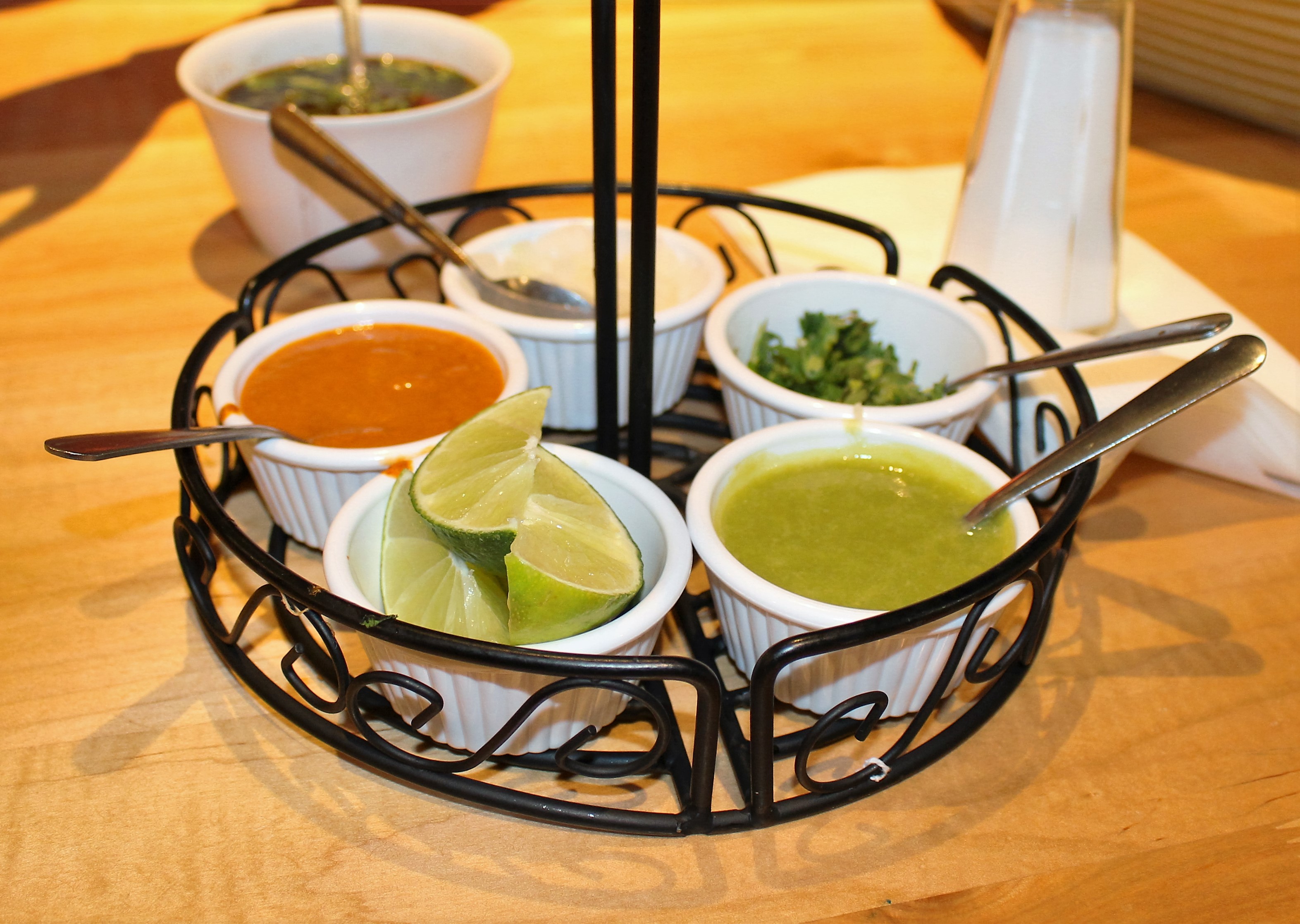 They also brought this colorful condiment tray. As I have said before, I love condiments! The salsas were good. Both had a little punch: one spicy and the other a tad smoky. And what isn’t better with a little squeeze of lime, a sprinkle of cilantro and a bit onion?